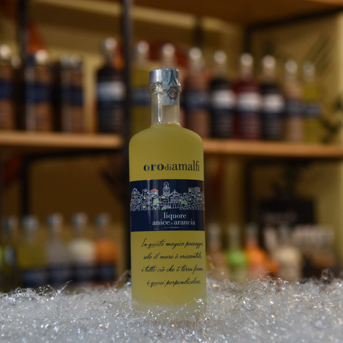 Ingredienti: alcool idrato, zucchero, bucce di arancia della Costa d’Amalfi, anice stellato, spezie. Ideale come digestivo o accompagnamento a dolci, va servito molto freddo.